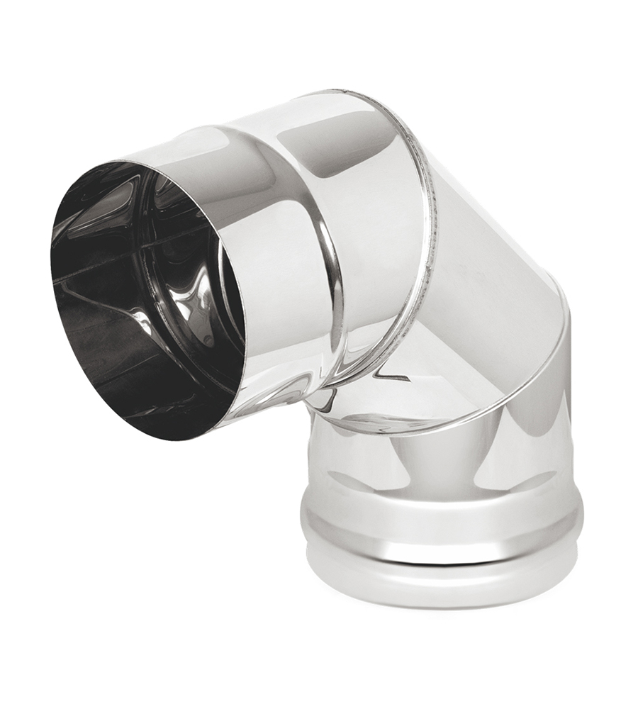 Колено используется для изменения направления труб дымохода на угол 90 градусов. Изготовлено из нержавеющей стали толщной 0,8 мм.