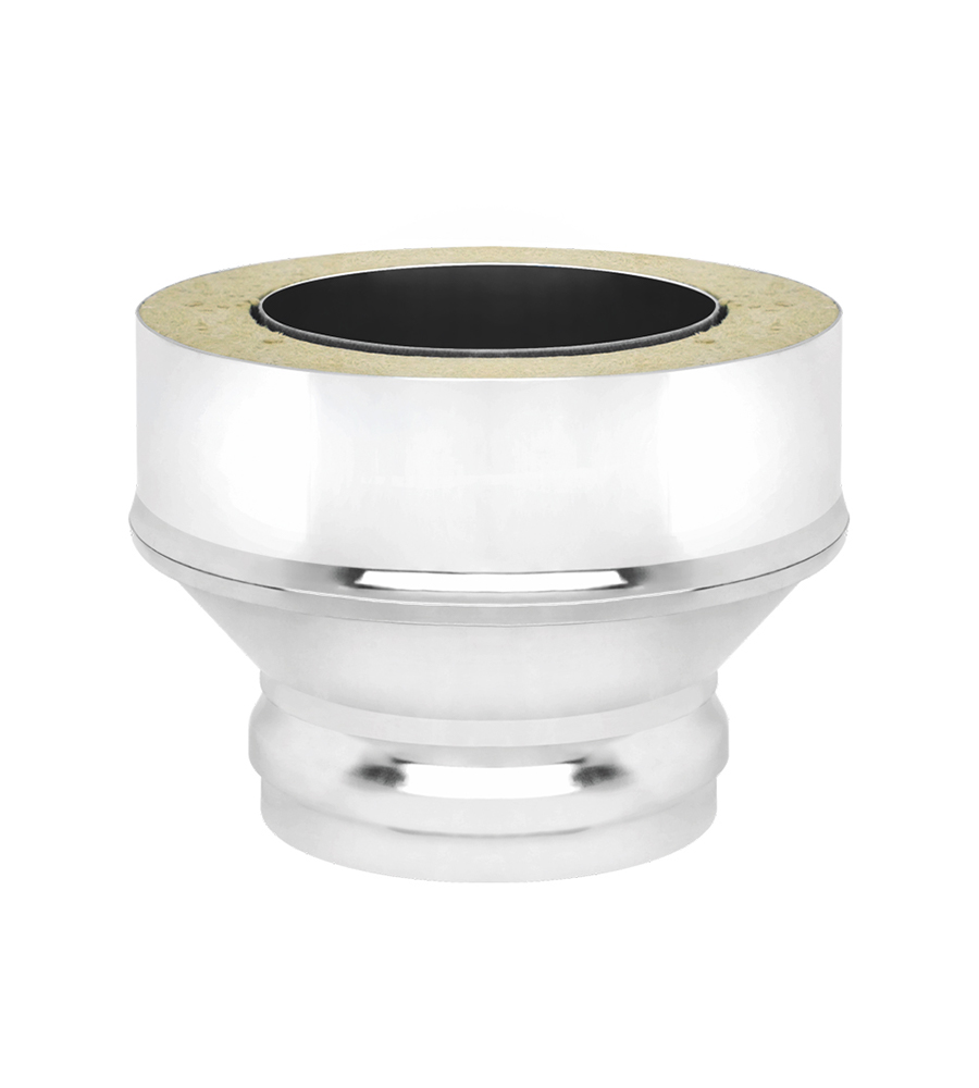Переходы устанавливается при переходе с неутепленной системы на утепленную (с одноконтурного дымохода на двухконтурный). Элемент дымохода "Переход на сэндвич" изготовлен из нержавеющей стали 0,8 мм и 0,5 мм.