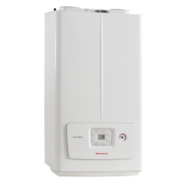 Immergas Victrix Omnia 25 V2 R газовый одноконтурный конденсационный котёл, мощность котла по отоплению 20 кВт, мощность котла по гвс для бойлера 26 кВт. Закрытая камера сгорания (турбированный), подключение дымохода 60/100 или 80/80 мм. Одноконтурный котёл для отопления и приготовления горячей воды с помощью внешнего бойлера косвенного нагрева (опция). Комплект для подключения бойлера установлен в котёл. Котёл сделан в Европейском Союзе Словакия.