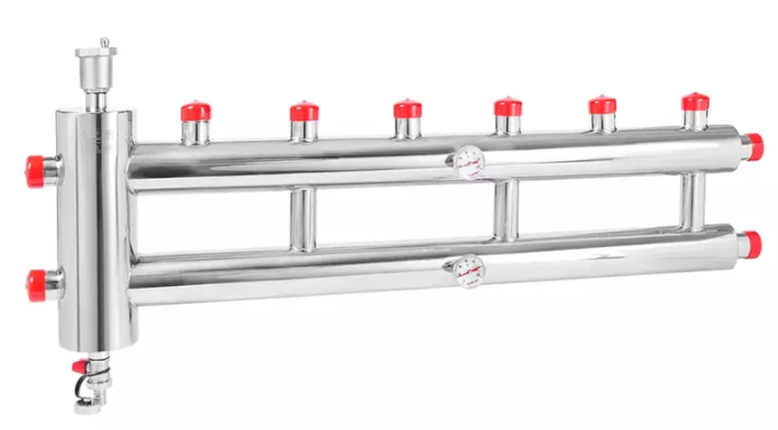 Гидравлический разделитель с воздухоотводчиком, совмещенный с коллектором 3+1 выхода VIEIR (HS3.1A)