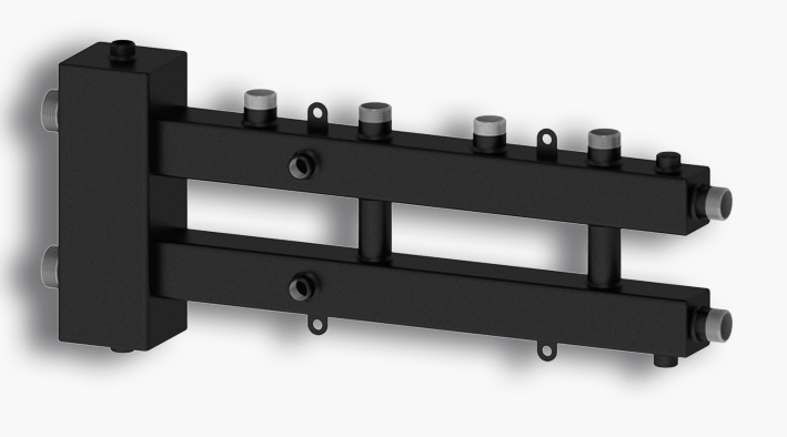 Гидравлический разделитель (гидравлическая стрелка) совмещенный с коллектором используют в системах отопления с несколькими отопительными контурами, когда каждый из них оснащен своим насосом, обеспечивая надлежащий баланс давления и расхода между контуром котла и контурами системы отопления дома при замедлении и распределении потоков.