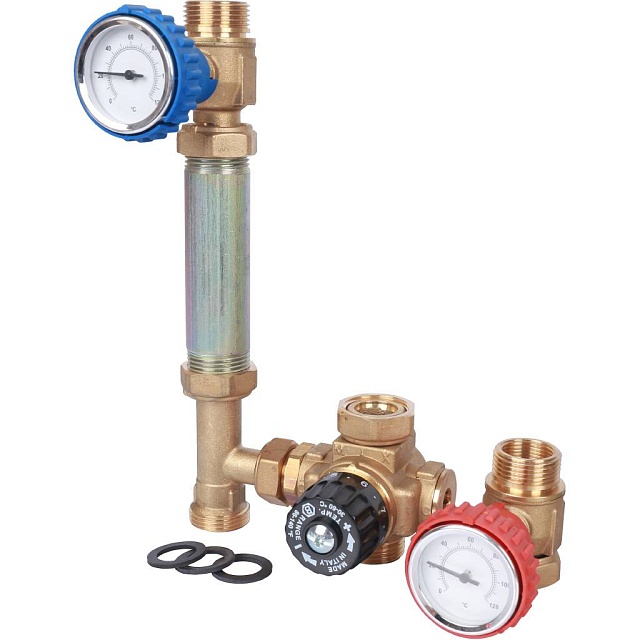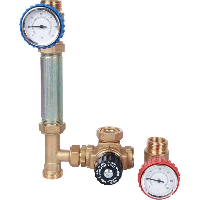 Насосные группы STOUT являются элементами гидромодуля быстрого монтажа полной заводской готовности. Предназначены для обеспечения требуемого температурного и гидравлического режимов в системах теплопотребления здания. Насосная группа быстрого монтажа с четырёхходовым термостатическим клапаном предназначена для обеспечения принудительной циркуляции и поддержания постоянной температуры теплоносителя в системе отопления, например, в системе типа «теплый пол».