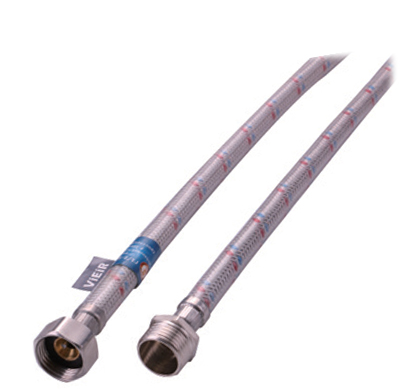 Гибкая подводка VIEIR в оплетке из нержавеющей стали с дополнительным защитным пластиковым покрытием. Данное покрытие осуществляет защиту от негативных воздействий внешней среды, препятствует образованию конденсата, способствует поддержанию пространства для инженерных коммуникаций в чистом и сухом состоянии а также имеет привлекательный внешний вид.