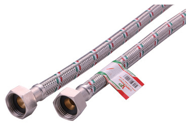 Подводка армирована оплеткой из усиленной нержавеющей стали AISI 304. Армирование шланга оплеткой из нержавеющей стали AISI 304 обеспечивает функционирование изделия, без протечек при давлении 15-20 атмосфер и температуре до 90º С, увеличивает прочность шланга на разрыв до 120 атмосфер. Благодаря свойствам нержавеющей стали гибкая подводка длительное время не утратит своего эстетического вида.