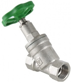 Прямоточный запорно-регулировочный вентиль, полнопроходной, ремонтопригодный. Используется на трубопроводах жидких (углеводороды исключены), газообразных сред, неагрессивных к примененным материалам, при температуре –40… +130 ºС, рабочем давлении до 16 бар. Арматура широко применяется в водо-, теплоснабжении для плавного регулирования расхода воды/теплоносителя, перекрытия канала, настройки систем. Особенности конструкции – разворот вентильной головки по ходу движения потока – обеспечивает повышенную пропускную способность вентиля. При изготовлении использована латунь марок CW617N (корпус, пробка), CW614N (детали запорного механизма), тефлон (сальниковая втулка), EPDM (уплотнения), нейлон (маховик управления). Корпус изделия никелирован.
