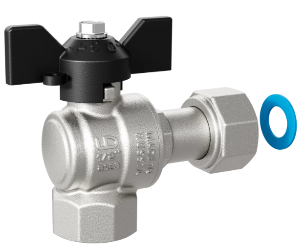 Кран шаровой угловой с накидной гайкой бабочка LD Pride 47.246