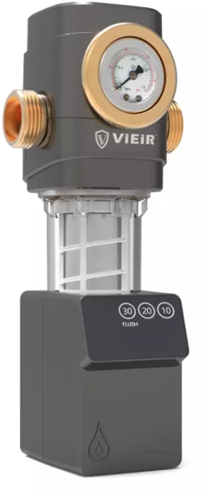 Неочищенная вода поступает в фильтр через входное отверстие, попадет в колбу фильтра и проходит внутри через фильтрующий элемент к выходу. В зависимости от размера и веса частицы, находящиеся в воде, оседают в нижней части колбы фильтра или прилипают к поверхности фильтровальной сетки. Сетка фильтра способна задерживать частицы размером более 40 μ и регулярно очищается с помощью автоматической промывки.