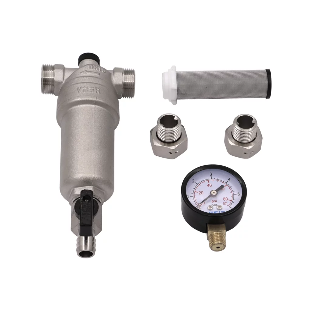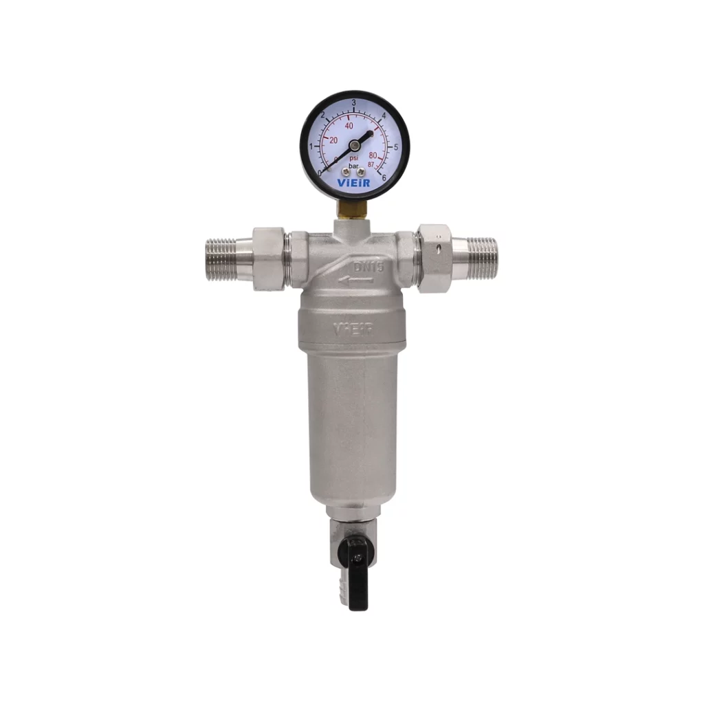 Фильтр с манометром для горячей воды, никелерованный VIEIR (JH-N)