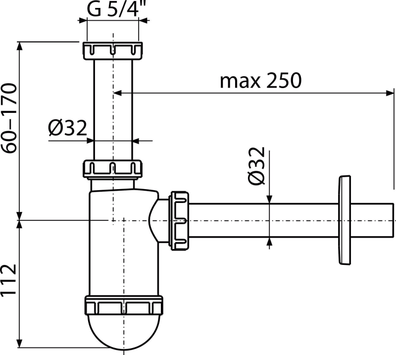 Сифон для умывальника DN32 c накидной гайкой 5/4" AlcaPlast A430