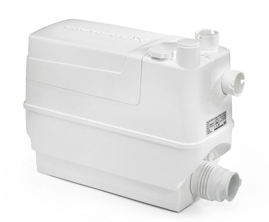 Канализационная насосная установка Grundfos SOLOLIFT2 C-3 это малогабаритная, полностью укомплектованная и готовая к монтажу насосная установка представляет собой герметично закрытый пластиковый резервуар в котором расположены - насос с двигателем “сухого исполнения” с обратным клапаном в напорном патрубке, реле уровня, вентиляционный клапан с угольным фильтром улучшенного качества (не требуются никакие дополнительные фильтры), электрический кабель длиной 12 м со штекером Shuko. Насос автоматически включается при заполнении резервуара (уровень включения) и автоматически выключается при его опорожнении (уровня выключения)