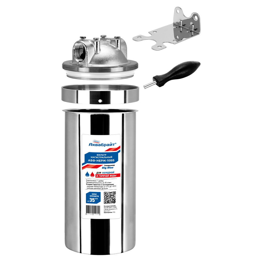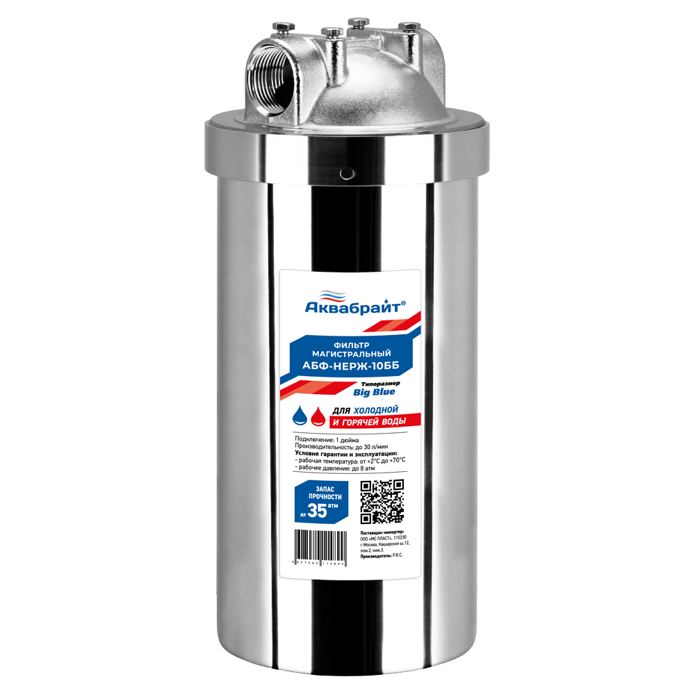 Магистральный фильтр АКВАБРАЙТ модель АБФ-НЕРЖ-10 ББ Корпус фильтра изготовлен из НЕРЖАВЕЮЩЕЙ СТАЛИ