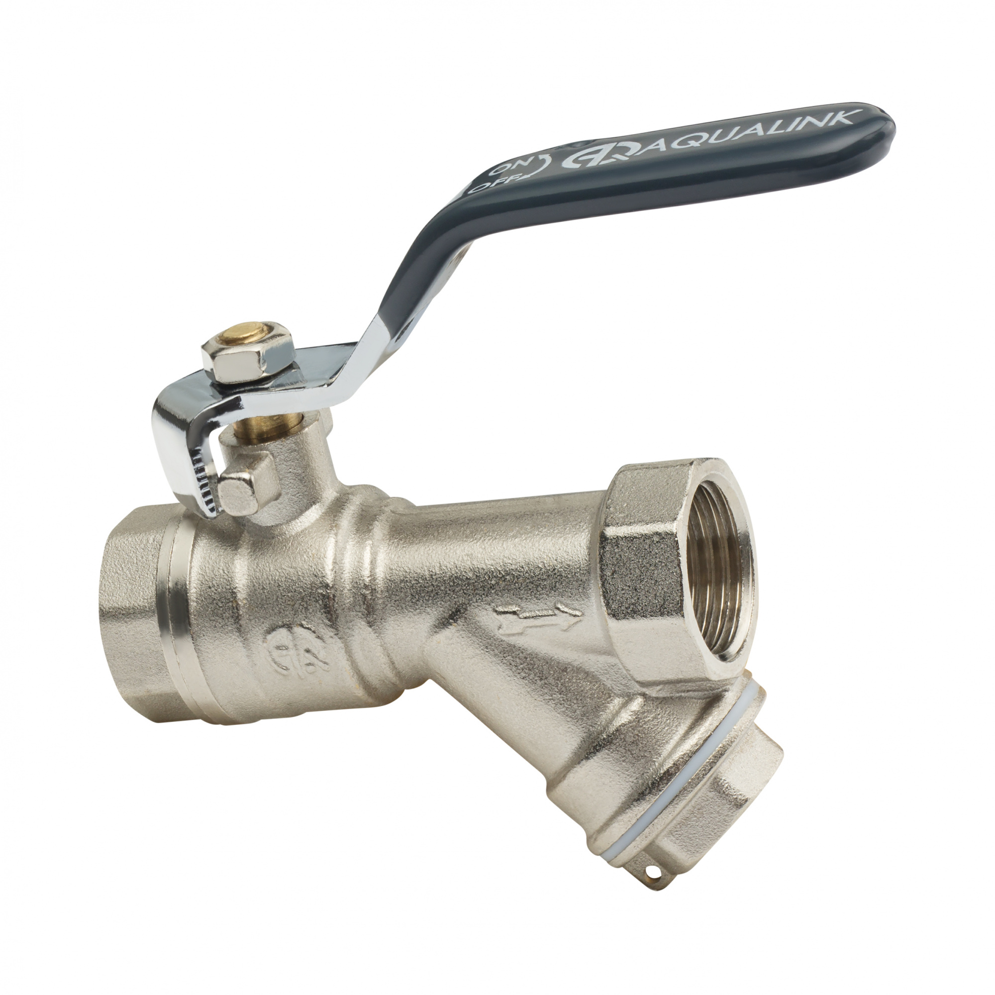 Кран шаровой ВВ Aqualink с косым фильтром ручка