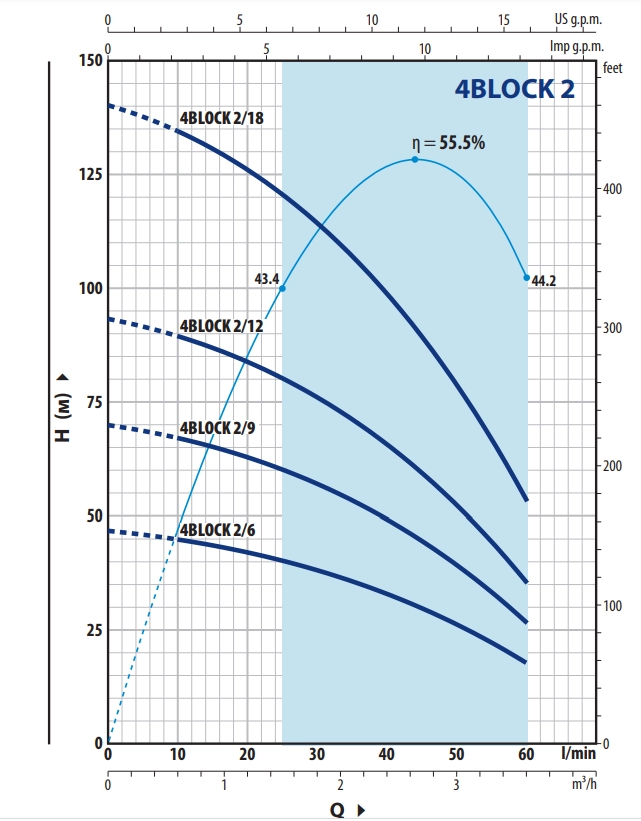 - Эффективность увеличена до max среди аналогичных насосов (+12% по сравнению с предыдущей серией), а потребление энергии значительно снижено.