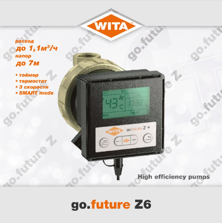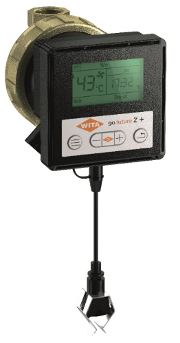 Высокоэффективный циркуляционный насос с электронной регулировкой частоты вращения, оборудованный электронно-коммутируемым двигателем с ротором с постоянными магнитами. Насос оснащен датчиком температуры и функцией таймера для максимального контроля линии рециркуляции. Корпус насоса изготовлен из латуни. Насос предназначен для систем рециркуляции ГВС.