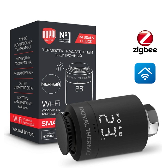 Термостат радиаторный электронный ROYAL THERMO Smart Heat с LED дисплеем и регулятором температуры. Точность установки температуры - 1°С.