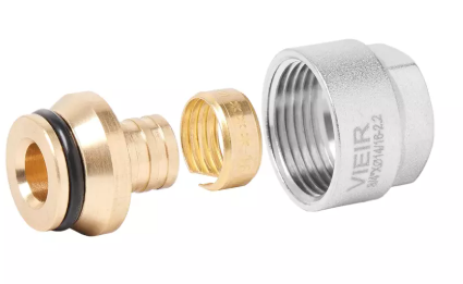 радиатора. Состоит из евроконусного штуцера с уплотнениями (антигальваническая изоляция), накидной гайки 3/4″ и разрезного кольца.