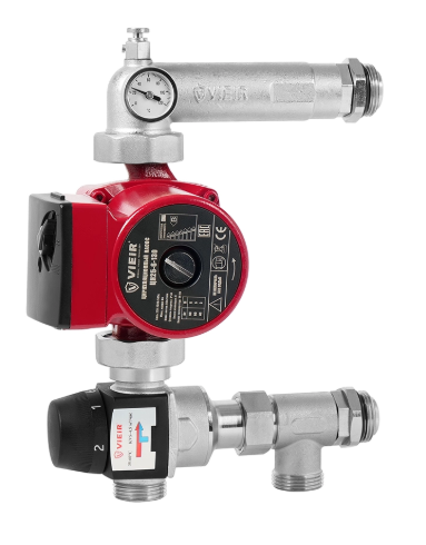 Насосно-смесительный узел для теплого пола 1″ 20 °С- 50 °С KVS 4.5 VIEIR без насоса (VR200A)