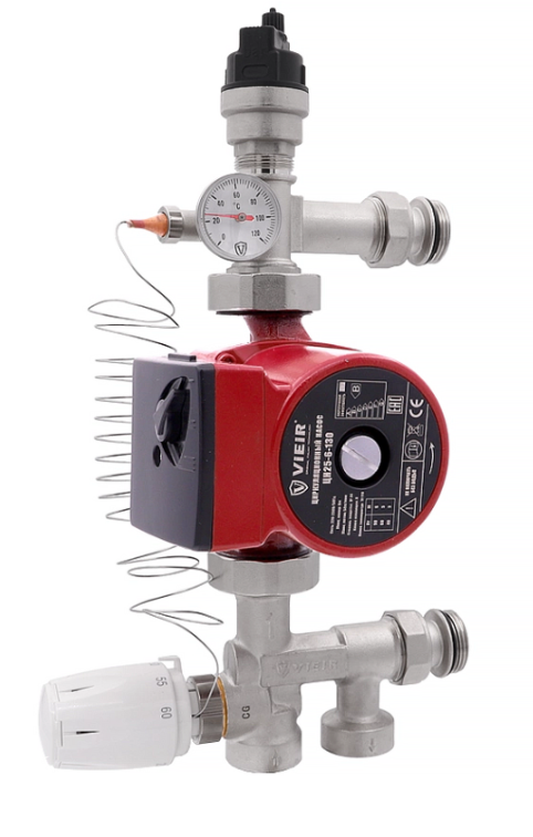 Насосно-смесительный узел ViEiR VR232 предназначен для регулирования и автоматического поддержания заданной температуры теплоносителя в системах водяного теплого пола, теплых стен,