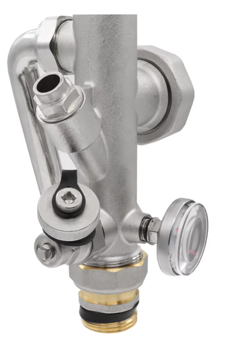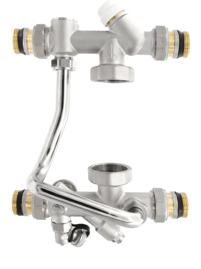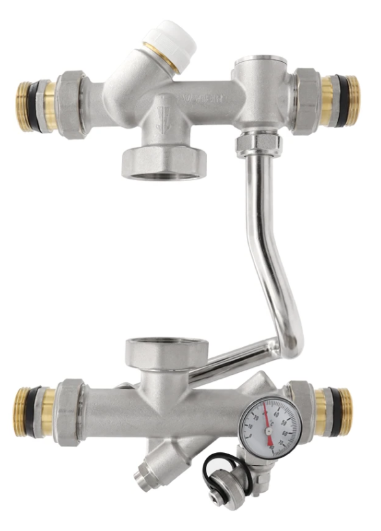 Узел может быть установлен как слева, так и справа от обслуживаемого коллекторного блока. При этом горизонтальное смещение присоединительных патрубков к коллекторному блоку обеспечивается за счет наклона узла на 9° от вертикальной оси.