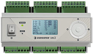 Euroster Uni 3 универсальный, погодозависимый контроллер отопительной системы. Графический дисплей с подсветкой и многофункциональная поворотная ручка регулировки обеспечивают интуитивное и простое обслуживание контроллера.