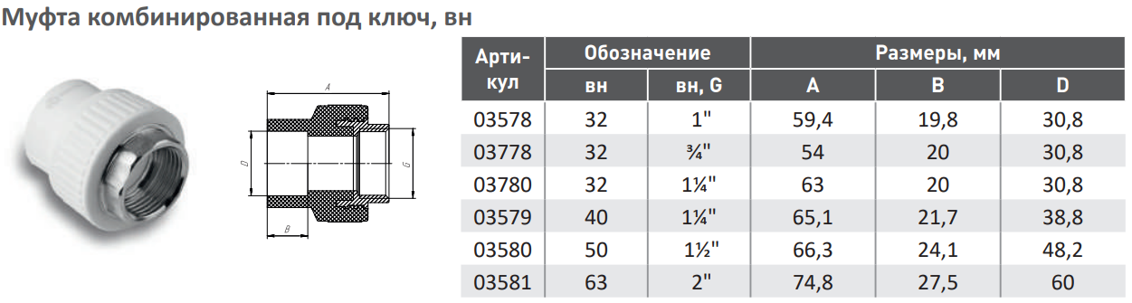 Муфта полипропиленовая комбинированная под ключ с ВР Aqualink