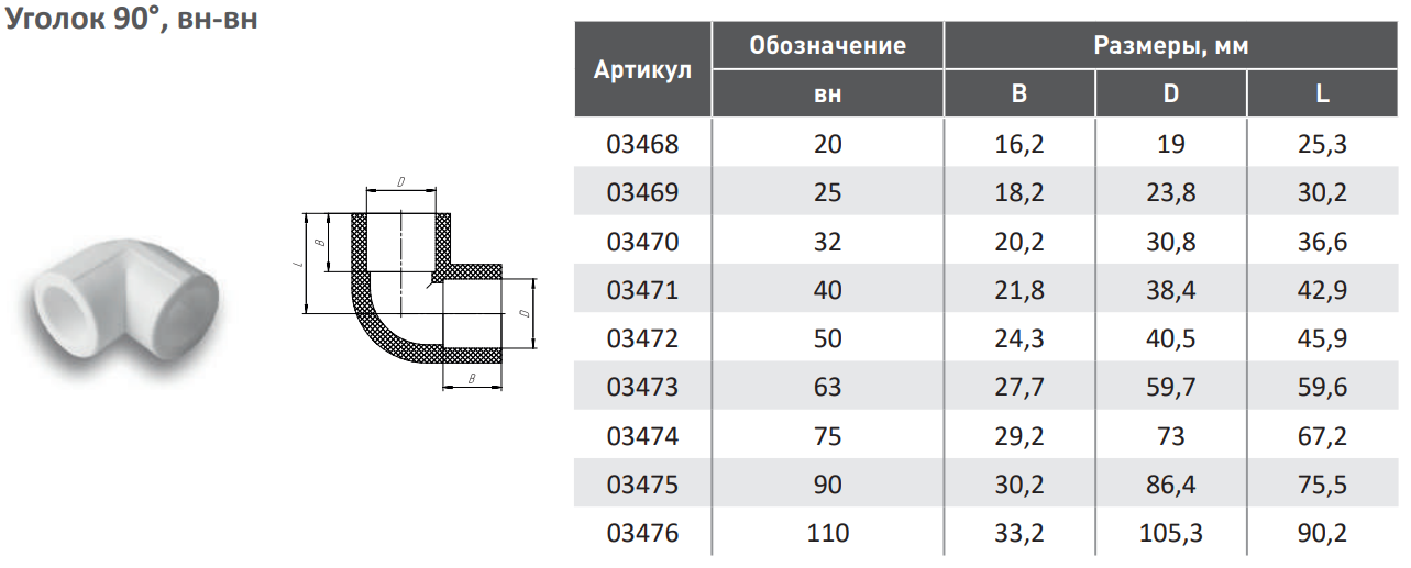 Угольник полипропиленовый 90гр. Aqualink