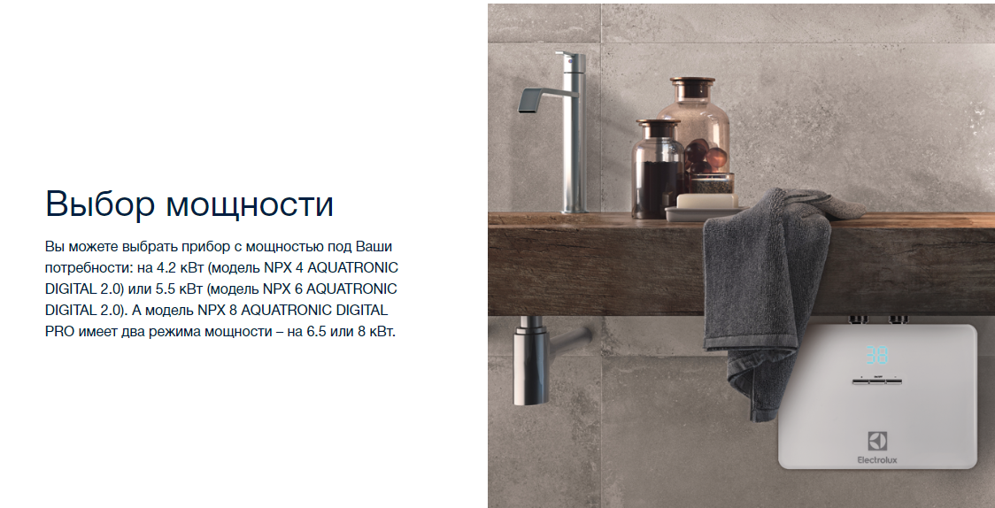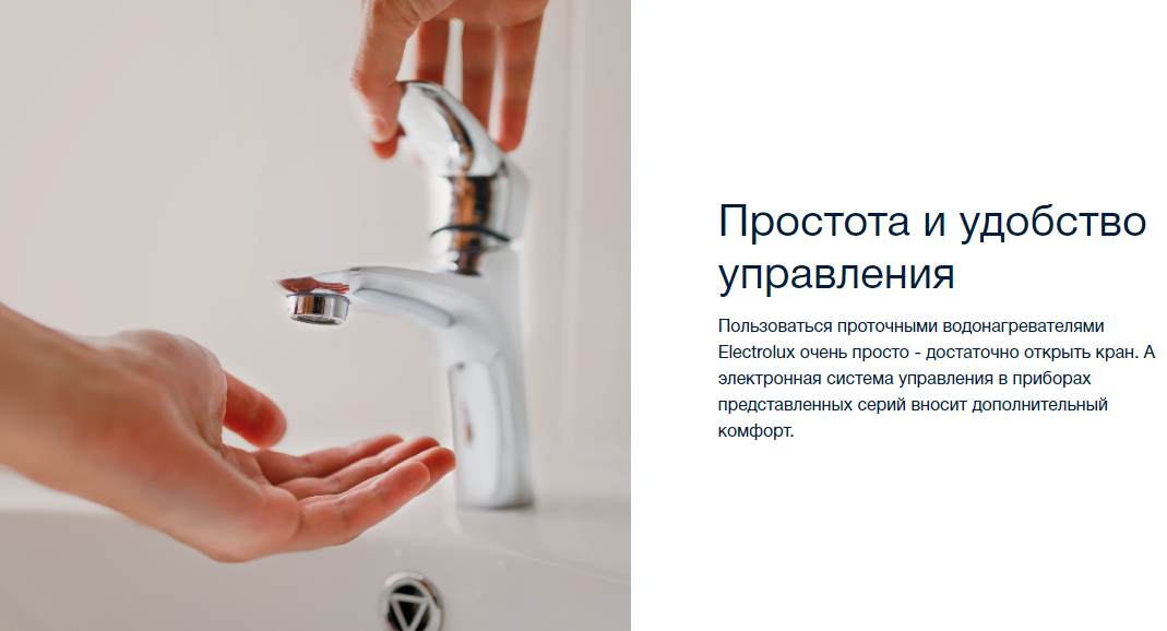 Пользоваться проточными водонагревателями Electrolux очень просто - достаточно открыть кран. А электронная система управления в приборах представленных серий вносит дополнительный комфорт.