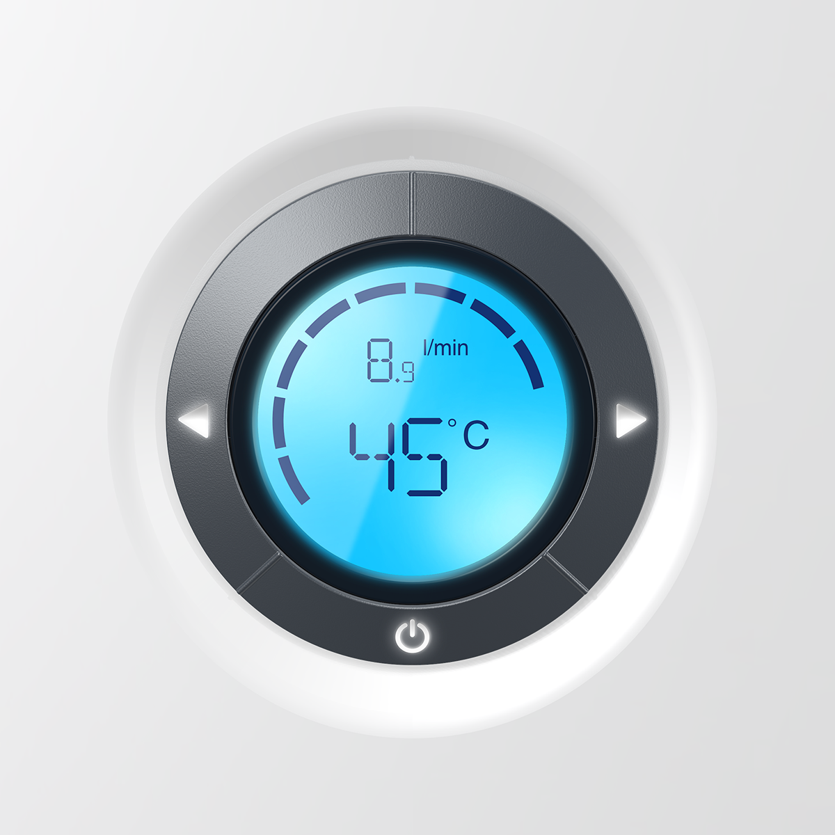 - использование с несколькими точками водозабора сразу, при этом водонагреватель поддерживает стабильную температуру воды даже при перепадах напора воды в системе водоснабжения. Установленный в водонагревателе современный процессор в авторежиме регулирует мощность и поток воды для постоянного поддерживания установленной температуры;