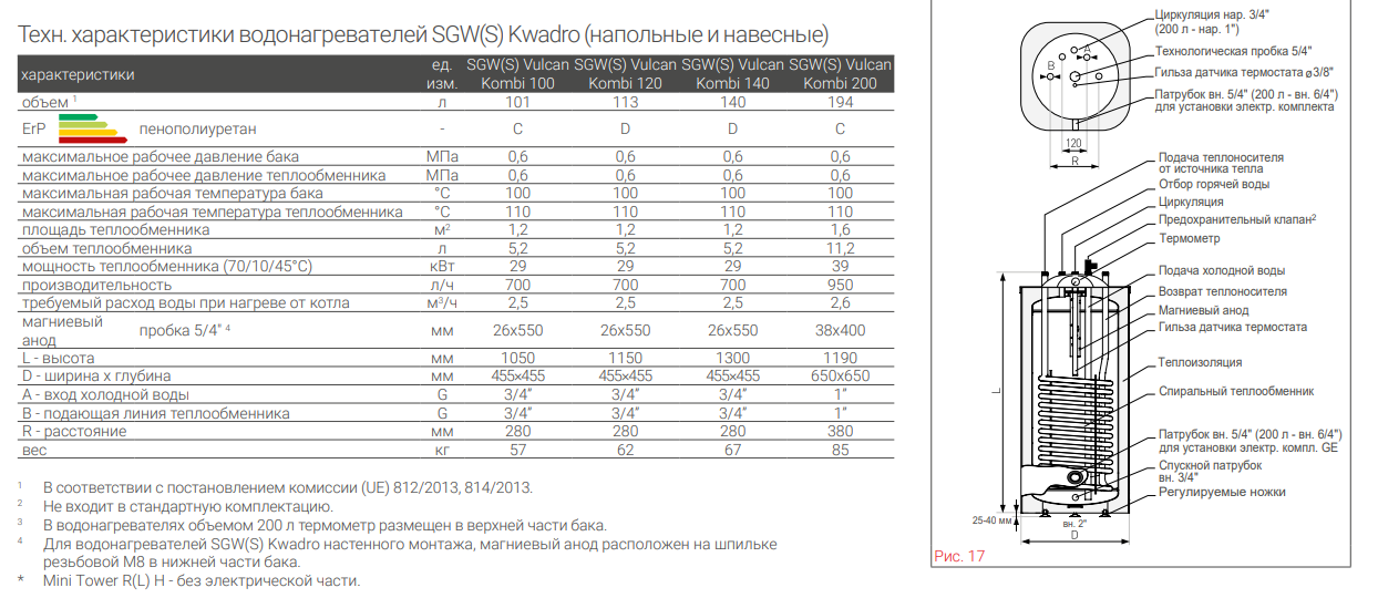 Напольные и подвесные водонагреватели KWADRO SGW(S) FL косвенного нагрева в стандартном исполнении (увеличенный на 50% срок службы баков):