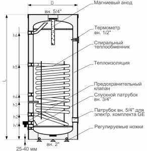 — магниевый анод на резьбовой пробке 5/4″ в верхней части бака;