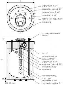 - Возможность установки водонагревателя под котлом — минимум соединительных элементов, экономия пространства.