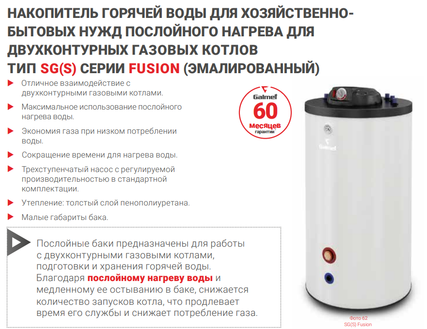 Послойные баки предназначены для работы с двухконтурными газовыми котлами. Благодаря послойному нагреву воды и медленному ее остыванию в баке, снижается количество запусков котла, что продлевает срок его службы и снижает потребление газа (котел не включается при небольшом заборе воды).